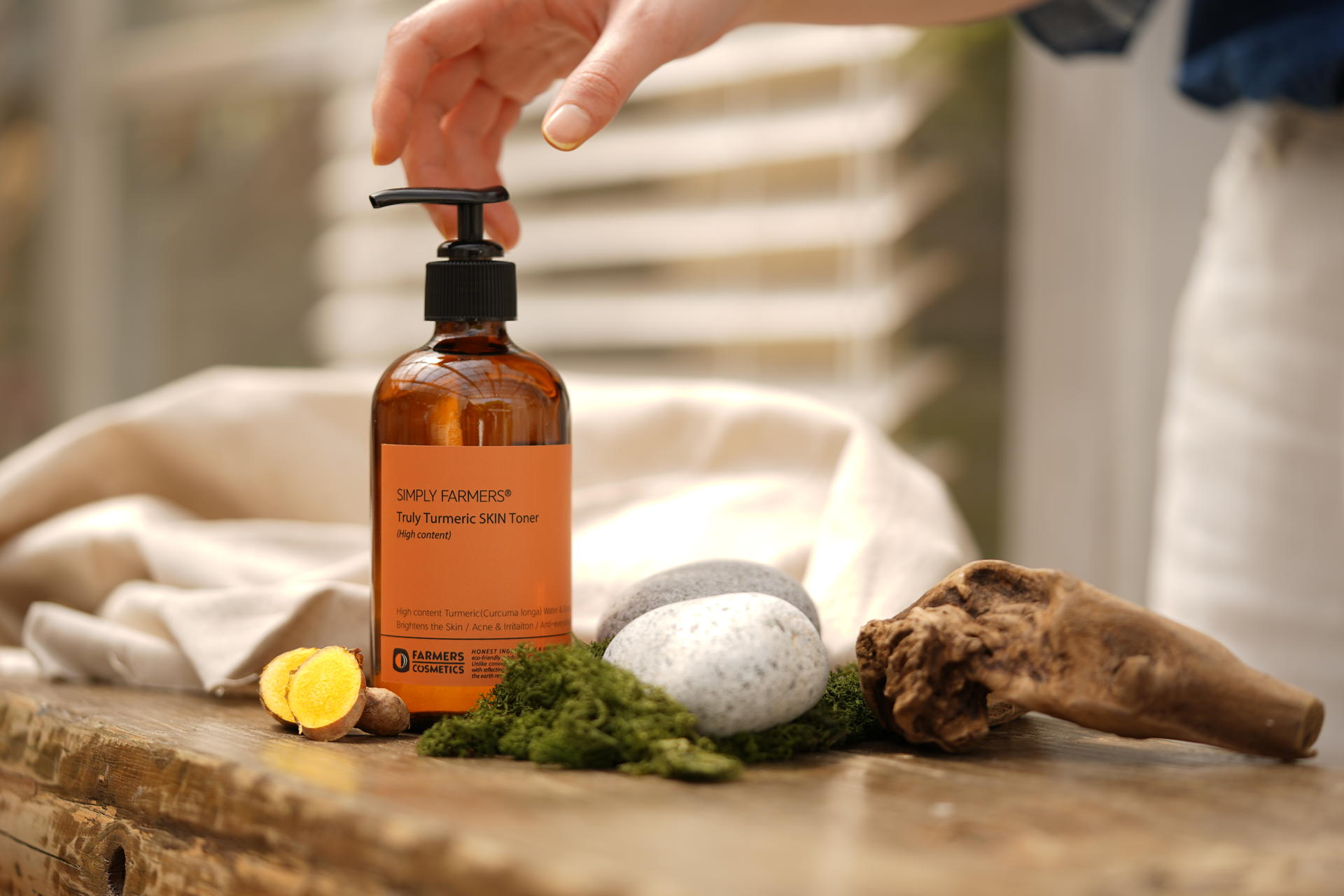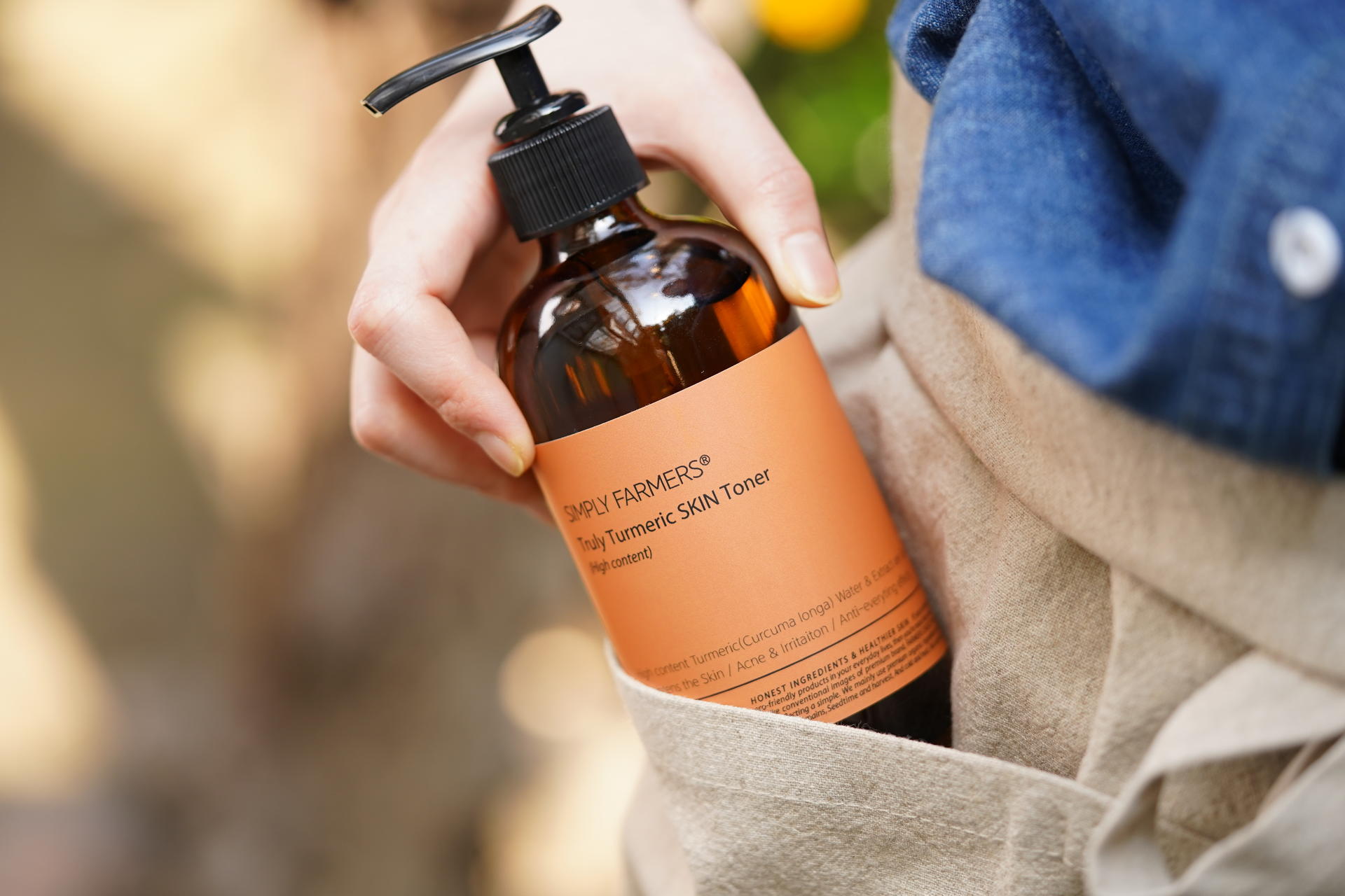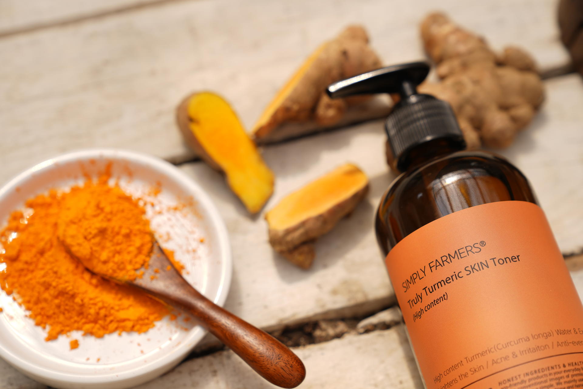 "SIMPLY FARMERS® 트룰리 튜메릭 스킨 토너'는 매우 높은 강황 원물함량(20~40%)을 농축추출 한 워터와 추출물을 베이스로 강황 특유의 뛰어난 피부진정 효능과 미백효능, 건조에 기인한 가려움 예방, 피부보호와 피지케어 효과를 기대 할 수 있는 차별화된 프리미엄 스킨토너 입니다.”